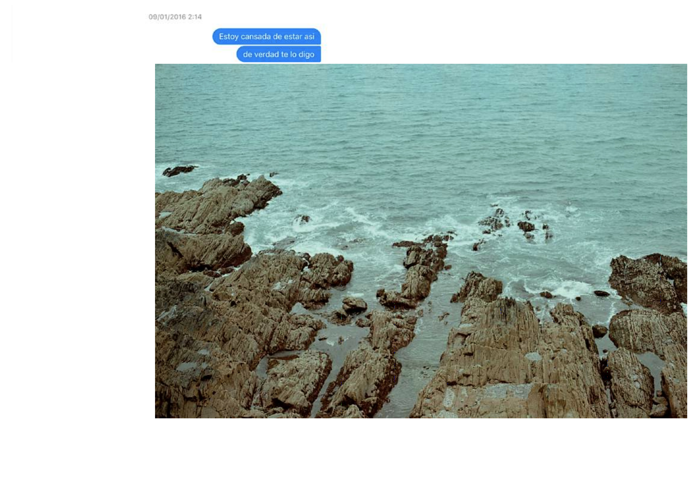 The analogue photographs correspond to the only three moments in which the protagonists are physically in the same place, as opposed to the texts extracted from conversations via Facebook, corresponding to the intervals in the that were separated.
